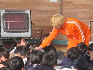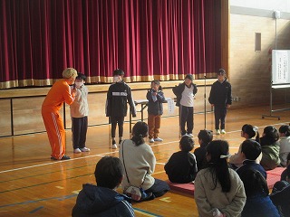 オレンジ田中さんからは、どんなことがあっても「叩いたり蹴ったりしない」「人の悪口を言わない」「なかまはずれをしない」という3つのことを大切にすることを伝えていただきました。高学年の時間では、ご自身の中学・高校時代、吉本芸人になってからの体験を話され、自分がどう行動すればいいのかを教えていただきました。「自分がつらい時には、先生や親など身近な人に辛くて困っているシグナルを出して。SNSには相談せず、出てきた情報は信用しないで」といったメッセージもいただきました。