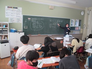 家庭の時間に「地域(学校)でできることを考えよう」というテーマで考えていました。本校は登下校指導、読書活動、校外学習、ふれあい学習等で、地域の多くの方々にお世話になっています。文化、協力、安全・健康、SDGsなどの観点から考えてみました。子どもたちからは、「何をするにもあいさつすることが大切だ」といった意見が出されていました。