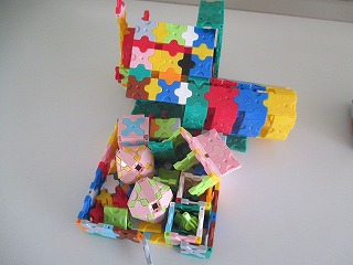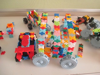 子どもたちの要望もあって、交流室にLaQ(ラキュー)という知育玩具を3セット置きました。休み時間になると、なかまと話をしながら、さまざまなものを組み立てています。レーシングカー、飛行機、家など、素敵な作品が並んでいます。