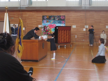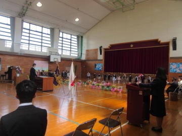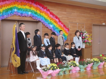 始業式の後、入学式を行いました。緊張した表情の1年生も、入学式が終わるまで起立や着席、お礼のあいさつなど、きちんと話を最後まで聞き、式の主役としてやり遂げることができました。学校代表で出席した6年生も、1年生へのあいさつもしっかりと伝え、校歌もきれいな歌声で歌うことができました。