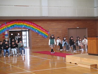 本日4限目、進行係の教員、教頭も入って、卒業式の通し練習をしました。最初と最後の子が来賓や先生にしっかりとあいさつをするのを入れ、効果音を流し、卒業式さながらに練習をしました。記念品贈呈の動きやお別れの言葉の練習も行いました。