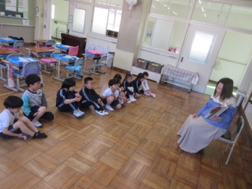今年度も、月に1回、読書ボランティアさんにお世話になり、読み聞かせを行っていただきます。今日は今年度の1回め。5名のボランティアさんがそれぞれ選んでいただいた本を読んでいただきました。子どもたちは、挿絵や言葉からお話の世界をイメージしながら、聞くことができました。次の読み聞かせも楽しみですね。