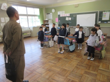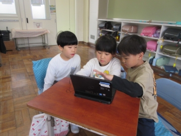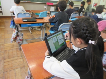 読書ボランティアの方が教室の様子を見ていただいているときのことでした。1年生の教室に入り、担任の先生から紹介されると、1年生の子どもたちは自然と席から立ち、くるっと後ろを向いて「よろしくお願いします。」とあいさつをしました。教科などの学習だけでなく、あいさつやマナーも学校での大事な学びです。入学してから2週間。とても素敵な姿でした。 朝の学習の一場面です。2年生がタブレット端末を使って朝の学習をしていました。デジタル教材を使って黙々と漢字練習をする姿、友だちと一緒にアプリを使って学習する姿など、それぞれが自分の課題に合わせて取り組んでいました。  |