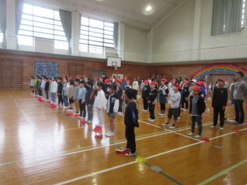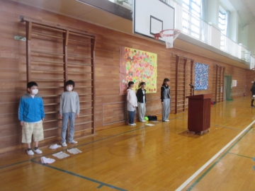 1限めに1年生を迎える会を行いました。5、6年生の運営員会の子どもたちが会の進行を行いました。初めに2~6年生で校歌斉唱。1年生にきれいな歌声を届けました。続いて、全校で学校のことを知るための〇✖クイズ。教室数や児童数、水沢小学校のキャッチコピー「〇〇に一番近い学校」など、運営員会の子どもたちが1年生に学校のことをよく知ってもらおうと、準備をしてきました。全校のみんなで楽しむことができました。