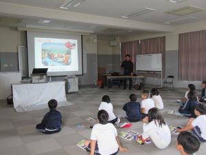 3年生は5・6時間目に「防火教室」がありました。四日市南消防署南分署から消防士の方に来ていただき、ミニ防火教室を実施しました。まずは、視聴覚室で「火事に備えて」のお話を聞きました。火事にならないために自分たちができることや家のどこに火災警報器がついているかを考えました。火事になったり、火事を見かけたときの連絡方法も教えてもらいました。子どもたちからは「住所が分からなかったらどうするの」という質問があり、「目印になる建物の名前を言うとよい」「電柱に住所が書いてある場合がある」などと答えてもらいました。また、キッチンでてんぷらを揚げているときに火が出てしまい、どうやって消したらよいか実際にコンロに火をつけて実験をしました。「火が出たら、水で消すよね。」と言って水をかけるとボワンと大きな炎が上がりました。火の出た油には絶対に水を入れてはいけないことが分かりました。