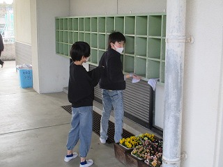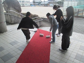 本日は、午後から4、5年生が卒業式の準備をしてくれました。卒業生が通る通路や階段をほうきで掃いて、雑巾で拭いてくれました。手洗い場やトイレもしっかりと掃除をしてくれました。体育館の座席も統一になるように、もう一度並べ直してくれていました。4、5年生がしっかり動いて準備してくれたおかげで、きれいな卒業式の会場が準備できました。4、5年生の皆さん、本当にありがとう。