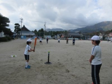 2限めに、3、4年生で合同の体育を行いました。ベースボール型のゲームで、バッターが置いてあるボールを打ち、守備のチームが全員で飛んできたボールを止めてその周りに集まるというルールです。バッターがベースにたどり着くのが早いか、守備がボールの周りに集まって座る方が早いかを競うゲームです。今日は、初めての授業でしたので、ルールを覚えることがめあてでしたが…さすが3、4年生です。すぐにルールを理解し、本格的にゲームを楽しみ始めました。バッターの順番を守る姿や応援しようとする姿は、自然と表れてきています。何度が取り組みを進めると、どんどん試合がおもしろくなってきそうです!  |