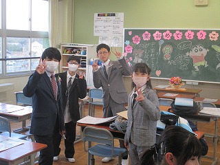 卒業証書授与では、「卒業証書がない」というハプニングがありましたが、それもいい思い出になったことと思います。笑顔を見せて、緊張感がほぐれたようでした。約1時間15分の卒業式でしたが、終始おごそかな雰囲気の中で進行しました。卒業生の皆さん、その保護者の皆様、ご卒業おめでとうございます。地域関係者の皆様、きらら委員(CS)の皆様、卒業式への参列ありがとうございました。5年生の皆さん、卒業式を盛り上げてくれてありがとうございました。明日からは最高学年となります。水沢小学校のリーダーとしてその役割をしっかりと受け継いでください。頼みますよ。