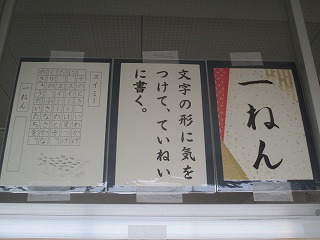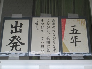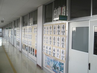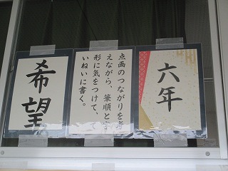 管理棟2階の廊下に子どもたちの書写の作品が展示されています。低学年は硬筆、中・高学年は毛筆の作品が掲示されています。冬休みにしっかりと練習をしたのでしょう。どの子も一所懸命に書いた様子が感じ取れました。