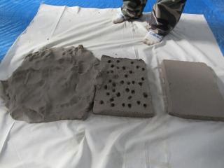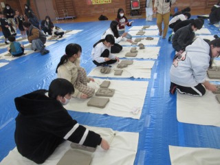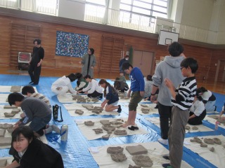 2月18日(火)19日(水)の2日間、150周年記念事業の1つとして「陶芸ワークショップ」がありました。はるばる愛知県の瀬戸市から陶芸作家の先生を講師としてお招きし、作り方を教わりました。校庭にある「水小花壇」を子どもたちが作った陶芸作品で飾る予定です。 1人10kgほどの粘土を用意してもらい、足や手、指を使ってあとをつけたり模様を描いたりしました。イメージが膨らんで集中して作る姿やリズミカルに粘土の上で踊りながら作る姿がありました。冷たい粘土の感触が気持ちよかったようです。 今日作った作品は瀬戸市の窯に持ち帰り、焼いてもらいます。そして、4月以降に釉薬で色付けをする作業をする予定です。