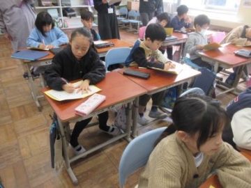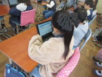 算数の学習で、これまで学習してきた三角形と四角形の特徴を確かめるため、発展問題にチャレンジしました。辺で囲まれていることや頂点が3つや4つある図形の特徴に合う図形を選んでいくのですが…中には、曲線が混じっていたり鈍角が含まれていたりしていて、授業の中盤で子どもたちも迷い始めました。一つ一つ特徴を確かめていくと「あ、これは、三角形でも四角形でもない。違う形だ。」と新たにカテゴリーを増やして調べ始めます。学習を進める中で、「迷う」ことは学びを深める大切な場面です。2年生の子どもたちは、45分の中でしっかりと学びを深めました。