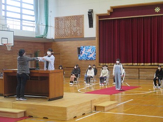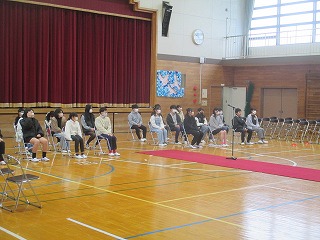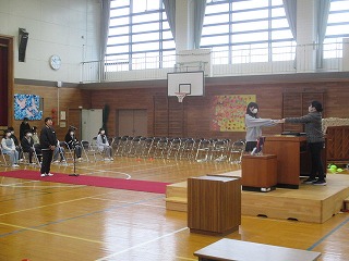本日1,2限目に、卒業式の練習をしました。今回は、卒業証書を授与されるときの流れと、旅立ちの言葉の動きを実際にやって覚えました。卒業証書授与の時には、カメラマンが写真撮影をするため、少し間をおいて卒業証書をもらうのと、顔を上げていることを確認しました。