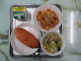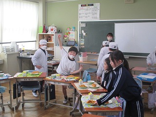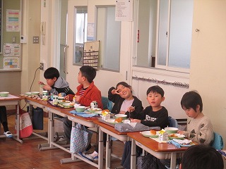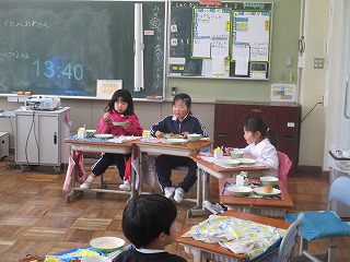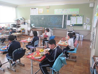 本日は今年度最後の給食の日でした。「小型玄米パン、牛乳、ミートグラタン、野菜スープ」のメニューでした。多くの学級が、みんなの顔が見えるような形になって給食を食べていました。この1年間、毎月の給食目標を意識して、食べることができたでしょうか。新学期の給食は、4月10日(木)から始まります。春休み中もバランスの良い食事と規則正しい生活を送り、4月からの新学期を元気に迎えてほしいと思います。