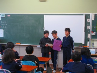 朝の会の時間に運営委員会の児童が各クラスに来て「学校生活目標」について話してくれました。3学期は1年間のまとめの学期ということで【クラスの課題を解決して進級しよう】という目標でした。この目標を達成するために自分たちのクラスでどのようなことに取り組んでいくかが学活で決められることでしょう。