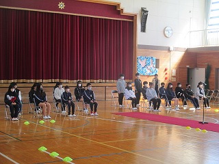 本日3,4限目に、6年生は卒業式の練習をしました。3限目は、入場と式歌「桜ノ雨」「旅立ちの日に」の練習をしました。4限目は校長も入って卒業証書授与の練習を2回行いました。授与の様子の個人写真を撮ってもらうので、少し間をおいて卒業証書を渡すのですが、タイミングはばっちりでした。マイクの前で、将来の夢やお世話になったお礼を語る場面がありますが、ゆっくりと言葉を丁寧に言えたらもっと良くなると思いました。明日は、5,6年生での式歌合唱練習があります。しっかりと声量が出て、卒業式が盛り上げられたらと思います。