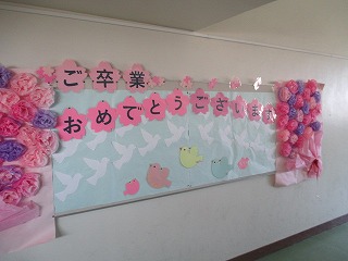 校舎内もさまざまな飾りがなされ、卒業式ムードが高まってきました。