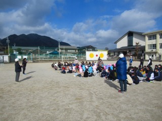 今日の訓練は「予告なしで」「休み時間に」実施しました。緊急地震速報訓練のベルが鳴ったのは、休み時間が始まって7分後でした。それぞれが運動場や教室、廊下などにいました。トイレや階段にいた子もいました。緊急速報の後「給食室から出火」という放送が入り、それぞれが自分のいた場所から避難場所である運動場に集まってきました。全員の無事を確認するまでにかかった時間は2分16秒。落ち着いて行動できていました。 避難訓練後の話で「大きな地震は【いつ】起きるかわからない。そのときに【どこにいるか】【誰といるか】によって行動が変わる。【どのようにしたらよいか】を友だちや先生、家族と話してみてください。」と伝えました。 1月17日、今日は「阪神・淡路大震災」からちょうど30年目の日です。早朝5時46分、当時の最大震度である震度7を記録した大地震でした。その後の火事も大きく広がり6300人あまりの人命が失われました。この地震のあと、建物の耐震や防火設備が見直され、次の大きな地震に対する備えが進んできました。自分の身を守るのは自分自身です。今日の避難訓練や防災学習を思い出して、いざという時に備えましょう。