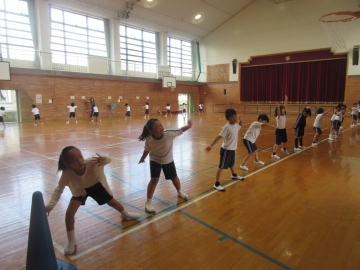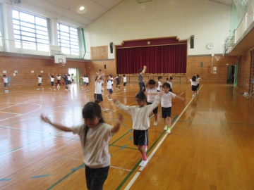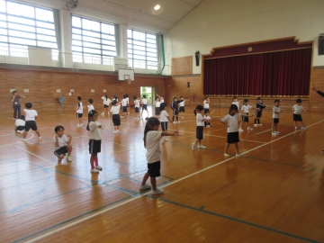 体育館で1、2年生が運動会に向けてリズムダンスの練習をしていました。弾むところやピタッと止まるところなど、音楽を聴きながら自然とリズムに合わせることができていました。本番さながらの隊形移動も、とてもスムーズにできています。本番まであと3週間です。楽しみながら思いっきり表現する1、2年生らしさが楽しみです!