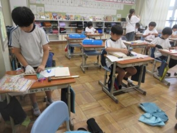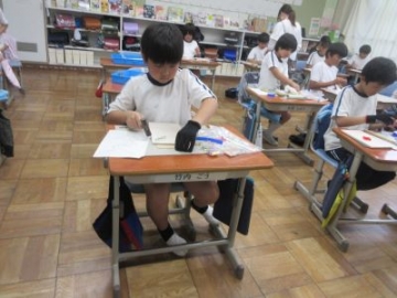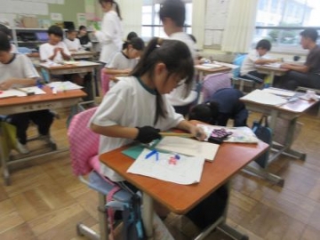 3年生が図画工作科の授業で、金づちを使って釘を打ちながら作品を作りました。小さな釘ですが、子どもたちは器用に釘頭をめがけて金づちでたたいていました。前の時間までに下書きをしたイメージ合わせて、釘を打ちます。どの子も集中して作品作りをする姿が印象的でした。