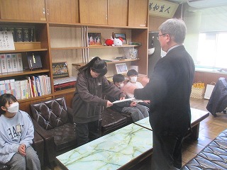 図書館サービス向上委員会主催の「りぶしるPOPコンテスト2024」に6年生が応募し、4人が佳作の賞をいただきました。本日の昼休みを使って校長室で表彰を行いました。お昼の放送を使って、全校児童には紹介をさせていただきました。参加者全員に、参加賞としてクリアファイルが渡されています。
