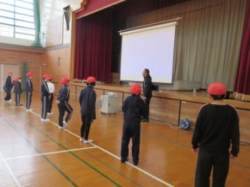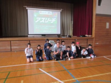 最後に山岸選手からは、「自分のやりたいことがあれば、周りの人に流されることなく、自分を信じてやりきること」「現状に満足せず、周りへの感謝を忘れずに、さらにレベルアップを図ること」など、これからの子どもたちにとって元気の出る言葉をいただきました。選手にはお礼を込めて、代表の児童から「いろいろなことを学べた。これからスポーツを楽しんでいきたい」とコメントを送りました。