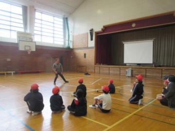 4年生が、2、3限めにパラ陸上競技でご活躍されている山岸英樹選手にお越しいただき、山岸選手のこれまでご経験や運動を通して体の使い方などを、楽しみながら学ぶ機会がありました。「体育館のラインの上に立って、目をつむって足踏みをしましょう」という声かけに、子どもたちはゆっくりと足踏みを始めます。だんだん線から外れて前や後ろに移動する子、中には、真横を向いてしまう子もいました。「視力の弱い方は、今、体験した世界で生活をしたりスポーツをしたりするんだよ」と、いかに感覚を研ぎ澄ましているかというお話をしていただきました。