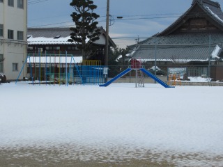 土日の大雪のあと、月曜日の臨時休校と火曜日の建国記念の日で2日間運動場で遊んでいませんでした。水曜日になり「やっと遊べる。」と思っていたところですが、曇っており、思った以上に雪解けが進まず、運動場での遊びは中止としました。水分を含んだ重い雪では、安全に遊べないと判断しました。はやく雪がなくなって元気に外遊びをしたいですね。