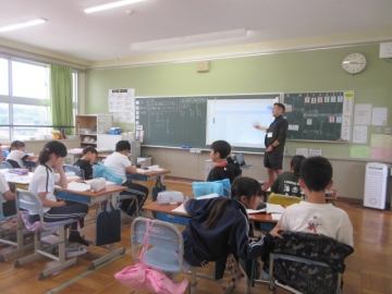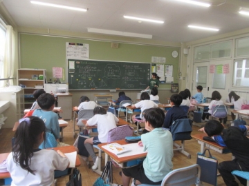 3年生、4年生の算数の授業では、わり算の答えの見つけ方を考える授業を行っていました。3年生では、式ができると、次はどう計算したらよいかを考えます。数を分解したりかけ算を使ったりと、一人ひとりが試行錯誤しながら問題に向かい合っていました。4年生では、答えを見つけるために筆算の方法を学びました。「かけ算とわり算がごちゃごちゃになる。」と言いながら、答えの見つけ方を丁寧に学習しました。