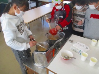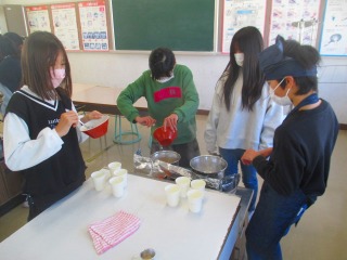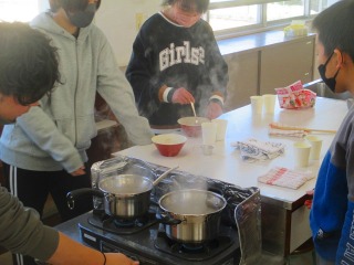 家庭科の時間に、具なしのみそ汁を作っていました。「だしが入っている」のと「だしが入っていない」のとを作って飲み比べていました。具が入っていないので、汁の飲み比べになりますが、どんな感じだったのでしょうか。「だしが入っている方がおいしい」と言っている子が多かったのですが、「だしなしのみそ汁の方がおいしい」と言っている子もいたようです。
