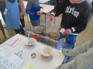 最近は、みそも上手に加工されているので、だしがなくてもおいしく感じるのかもしれません。来週には、具も入れて、みそ汁を作る授業が行われる予定です。