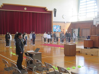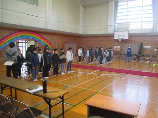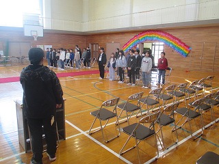 本日4限目に、5年生も入って式歌、呼びかけの練習をしました。5年生にとっても6年生の動きを見ることは、最上級学年になるという意識付けになったことと思います。「さようなら」をいうタイミング、5,6年生の合唱でどれだけの声量が出るのか、気になるところです。5,6年生、合わせて48名なので、1人ひとりがしっかりと責任を持って、練習してほしいと思います。