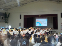 6年生の発表は、「平和の鐘」の合唱でした。子どもたちの平和への思いがこもった合唱で在校生はきれいな歌声に感動していました。