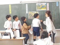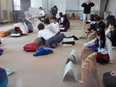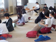 音楽の時間、箏の講師の方にお越しした抱き、出前授業をしていただきました。箏を触るのも演奏するのも初めての子どもたちがいて、どうやって音を出すのか等基本的なことから教えていただき、授業の終わりには、「さくらさくら」の演奏をできるようにまで上達しました。