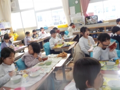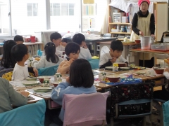 キムチの辛さをたくあんが吸収するので、子どもたちにも好評だそうです。「キムチおいしい」という声も教室で聞こえていました。