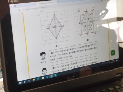 5年生がみえスタディチェックで国語、算数の学力調査に取り組みました。タブレットを使って回答するCBT 方式と記述方式の併用でのテストでした。