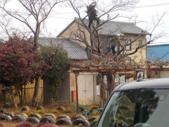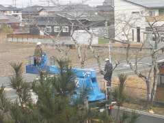昨日に続き、今日も業者の方がお越しいただき、樹木剪定をしていただきました。