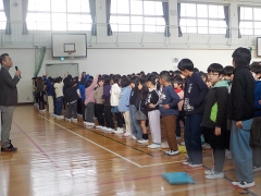 二学期最後の一日です。終業式の前に、表彰式を行い、三泗小中書写展や人権作文、人権標語などの表彰状を渡しました。