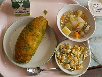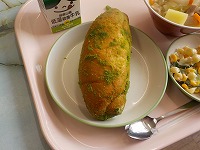 今日の給食は、緑茶あげパン、、牛乳、ポトフ、マカロニサラダでした。子どもたちの人気メニューの一つあげパンです。給食室で調理員さんが一つ一つあげてくれました。今年からはあげパンが大きくなり、今まで付属していた小型パンがなくなりました。緑茶をを使ったあげパンでおいしくいただきました。