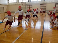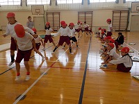 新体力テストに向けて反復横跳びの動き方について知りました。横にスムーズに動くことができるように友達と一緒に動きながら練習していました。本番ではたくさんの回数が動けるようになるといいですね。みんなでがんばってほしいと思います。
