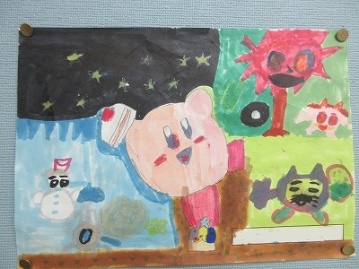 児童玄関横の掲示板には、3つのクラブの作品が掲示されています。