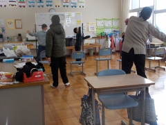 朝の会の時間、やまびこ学級でラジオ体操を毎日取り組んでいます。やまびこ学級で毎日習慣にしながら子どもたちの体力向上を目指しています。