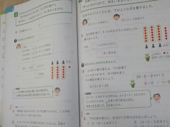 2年生で学習した九九を使って、あまりのあるわり算を計算しています。子どもたちは、文章問題から図を描いて考え、答えを導きだしました。