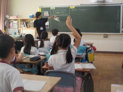 実習生が授業を実践していましたが、表情も柔らかくなり、子どもたちへの指導も少し余裕が出てきたようで、成長を感じています。