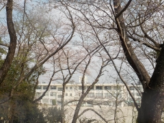 学校もまもなく始まる新年度に向けて準備中です。新1年生の子どもたちが入学に向けて学校周辺の桜もお祝いしているようです。