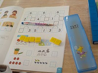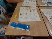 算数の時間、6個算数ブロックを出してペアになり、一人がブロックをいくつか隠しました。残ったブロックを見て隠したブロックの数を当てていました。子どもたちにとってゲーム感覚のような活動で楽しく数の仕組みを学習することができました。