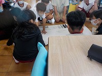 国語の時間、宮沢賢治作の「注文の多い料理店」の学習に取り組みました。学習したことをノートやタブレットでまとめ、学習したことを班で話し合って模造紙にはりあわせていました。