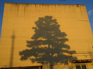 テーダマツと北校舎の壁、そして太陽の位置がうまい具合に合わさり、描かれていたのです。