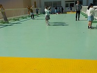 朝から渡り廊下に出て気温を測りました。中には、日陰と日なたの気温差を図るために大の字に寝転がって気温差を体感している子もいました。