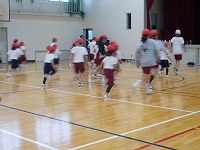 新体力テストの実施は1年生にとっても初めての経験で、未知の世界です。シャトルランを6年生といっしょに取り組みました。