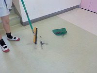 昇降口では、運動場からの砂がたくさん靴箱の下にたまっていましたが、一生懸命取ってくれていました。